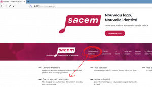 Sur la page d’accueil du site de la Sacem, vous cliquez sur Créateurs et éditeurs dans le bandeau du haut puis sur Documents et brochures qui s’affiche. Cochez Bulletins de déclaration dans Affinez votre recherche
