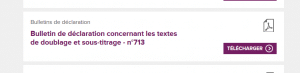 Si vous n’avez pas des exemplaires en stock, vous trouverez un bulletin de dépôt pour le doublage et le sous-titrage à télécharger sur le site de la Sacem. Voilà comment le trouver :